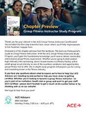Centered around ACE University, our intuitive learning platform, the content is delivered through comprehensible text, charts, graphics and videos, as well as online activities, practice tests and on-demand study support. With the ACE Study Dashboard, you will have quick access to all of your study tools and be guided by progress indicators, smart notifications and alerts, calendars and reminders. Designed for all learning styles, the ACE Group Fitness Instructor Study Program is flexible and self-paced, taking most just 3-6 months to complete.